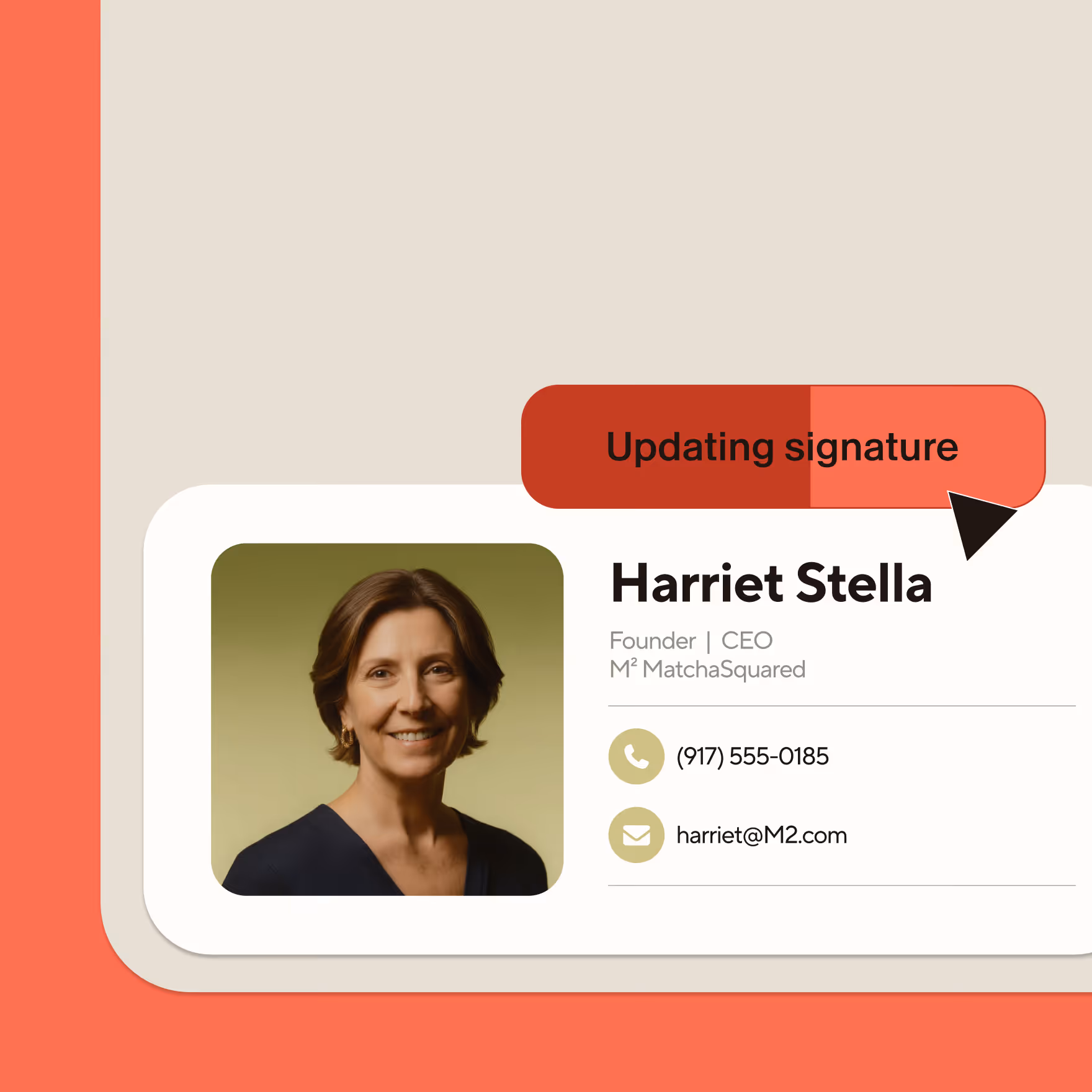 Professional, on brand email signatures for you and your team. Built fast, shared easily, and saved straight to any device.